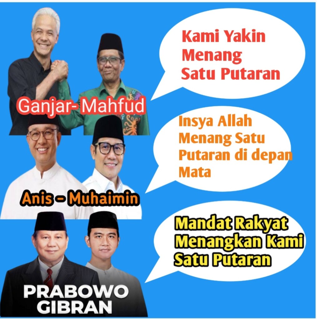 Tiga Capres di Pilpres 2024 klaim bisa menang satu putaran. Muncul pertanyaan siapa Capres yang layak memimpin Indonesia 2024 ?